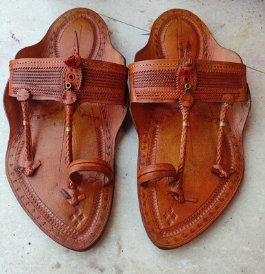 leather kolhapuri chappals for men women unique pointed shape Handmade slippers