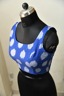 A Beautiful Black Blouse Made Of Pure Cotton Ikat Fabric. This Blouse Opens From The Back And Is Sleeveless. This Blouse Is Made From Fine Quality Cotton Which Is Preshrunk And Hence Wont Shrink Further. There Is Enough Margin In Each Blouse To Make It Bigger By Few Inches.It Has A Round Neck